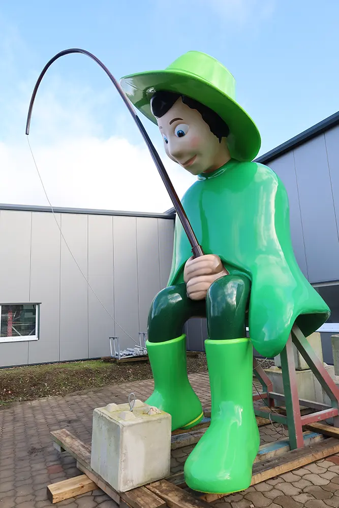 Was als Skizze begann, wurde Schritt für Schritt zu dem, was du heute sehen kannst: Ein übergroßer Angler mit Haltung – humorvoll, bunt, ein bisschen absurd und doch sehr klar in seiner Botschaft. Und das Schöne: Auch meine Entstehung ist tief mit der Region verbunden. Gefertigt wurde ich von erfahrenen Handwerks- und Produktionsbetrieben aus der Nähe von Hannover. Menschen mit Geschick, Herz und viel Liebe zum Detail haben mich zum Leben erweckt – mit geschweißtem Metall, wetterfester Kunststoffen und einem sicheren Gespür dafür, wie aus Material ein Zeichen werden kann.