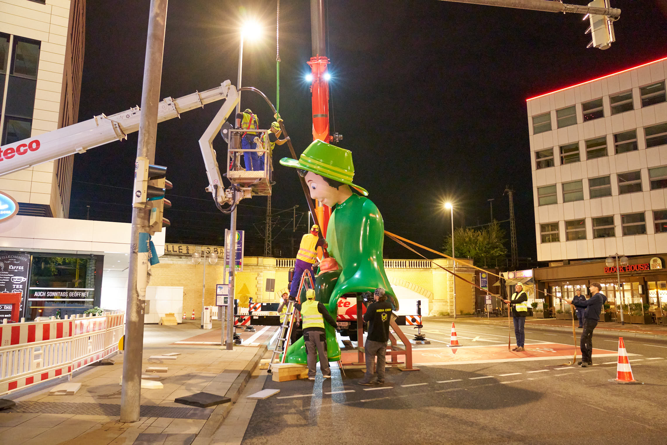 Meine Geschichte beginnt bei der GETEC Immobilien, genauer gesagt bei Dr. Michael Behrens, der das Joachims Carrée mit viel Leidenschaft neu gedacht und umgestaltet hat. Im Zuge der Renovierung des Gebäudes am Thielenplatz entstand die Idee, diesem Ort etwas Besonderes zu geben – eine markante Installation, die das Stadtleben aus ungewohnter Perspektive betrachtet.